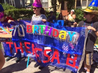 The banner was made 40 minutes prior to the parade, gotta love colored duct tape. |