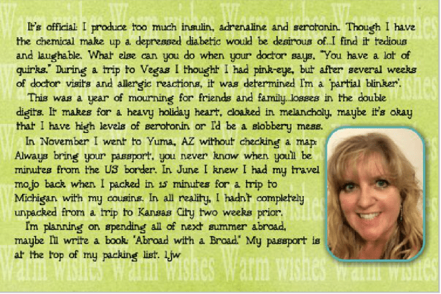 December 29, 2014November 3, 2016Lisa Witz Christmas Card 2014 This year I was feeling well enough to design a Christmas card: Share this: Click to print (Opens in new window) Print Click to email a link to a friend (Opens in new window) Email TweetLike Loading... Related