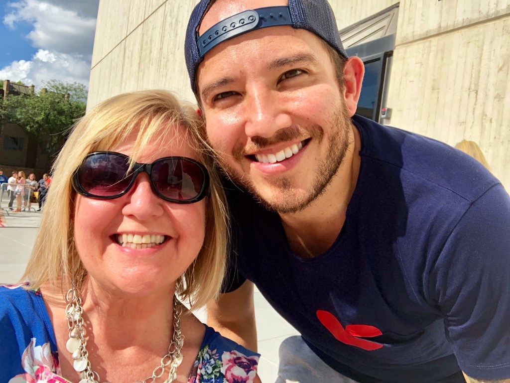 After a quick picture with him, I rushed off to pick up our mystery-seat tickets: two seats—next to each other—THIRD ROW CENTER!