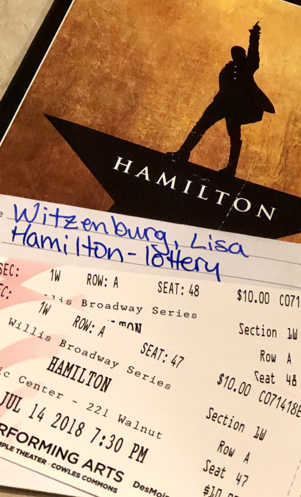 We made a pact, my cousin and I — daily, to enter the lottery for Hamilton tickets, and if we won, we would go together…I WON! There was no guarantee on the location of the seats nor if they would even be near each other and might have an obstructed view, but for a total of $20 we were elated and squealed in delight.